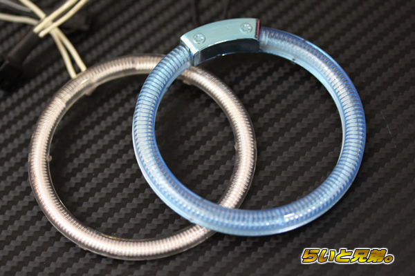 インナー塗装にクリアカバーのイカリングを取り付けるとバランスが悪いので、リングカバー表面をスモーク化して一体感を出す方法です。トータルバランスがよくなりますので、オススメの加工です。※基本的に光量に影響がでないように薄めでペイントします。他カラーや濃淡は対応できますのでお問い合わせ下さい。 ◆未塗装の通常LEDエンジェルアイ(通常はこちらとなります)◆キャンディスモークペイント◆HV風ライトブルー<加工料金表> ・レンズカバー塗装 1リング 1,200円〜<免責事項> ・レンズ脱着に関する費用(弊社にて施工の場合も同様です) ・お客様自身で改造した際、取り付け時に配線ミスなどでの破損 ・代車利用費用 ・車を使用できない場合に発生する損失